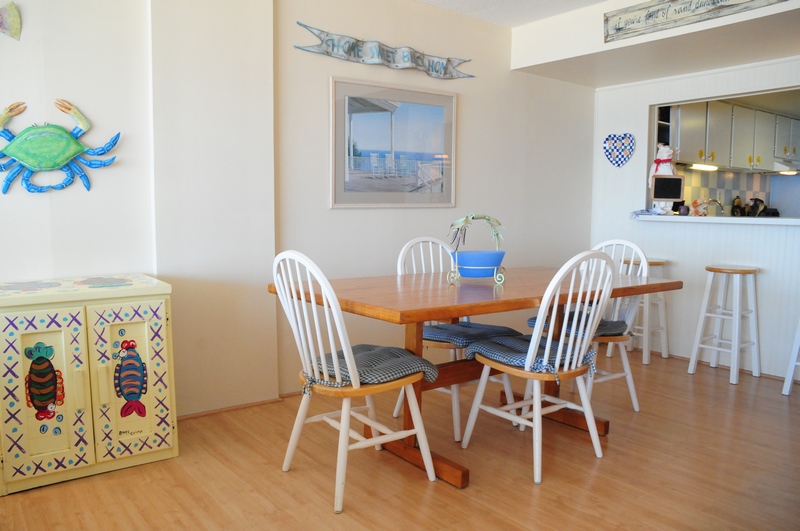 Sleeps 6. Non-smoking. One king, two double/full. Condo newly painted, Master bedroom new carpet, new blackout shades in both bedrooms. Three TVs, 3 DVD. WiFi in condo. Well equipped kitchen, access to balcony from living and master bedroom. Balcony has 4 chairs and 1 small table. Condo has iron/ small ironing board, board games, books, and puzzles. Easy access to trash chute, washer/dryer, elevator. Uniquely decorated. All you need to do in enjoy the beautiful views of the beach and ocean.