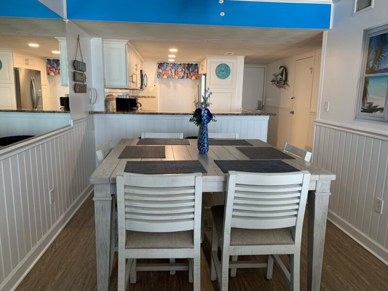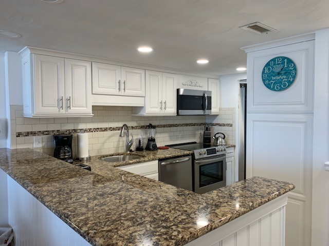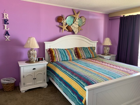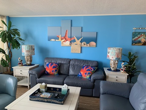 You are welcome to spend a week or a month (during off season) in relaxation and comfort at the Edgewater Condominiums .Recently painted and decorated. Beach Themes New stylish leather sofa and loveseat. King, Double and Bunk beds. Master bedroom with sliding door to balcony. Balcony furnished with wrought iron table and chairs. 3 Flat screen TV's 1 DVD player