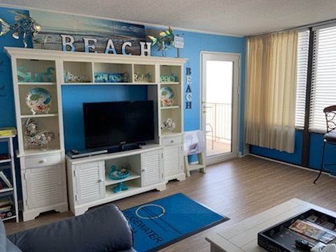 All rental units are fully furnished with living room, dining area, fully equipped kitchen, two bedrooms with plenty of closet space, and two baths. Beautiful, expansive views of the oceanfront are available from the living room and the master bedroom, with a private balcony above the beach, just off the living room. All units are equipped with air conditioning, heat, TV with streaming capability. Laundry rooms are just outside your front door. All rental units are individually owned and decorated according to the tastes of the owner. A standard unit floor plan is shown to the right. Please click the “Images and Information for All Units” button to the right to get a list of links that will allow you to see details of all units.