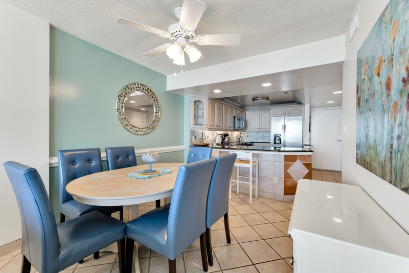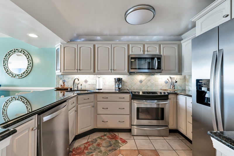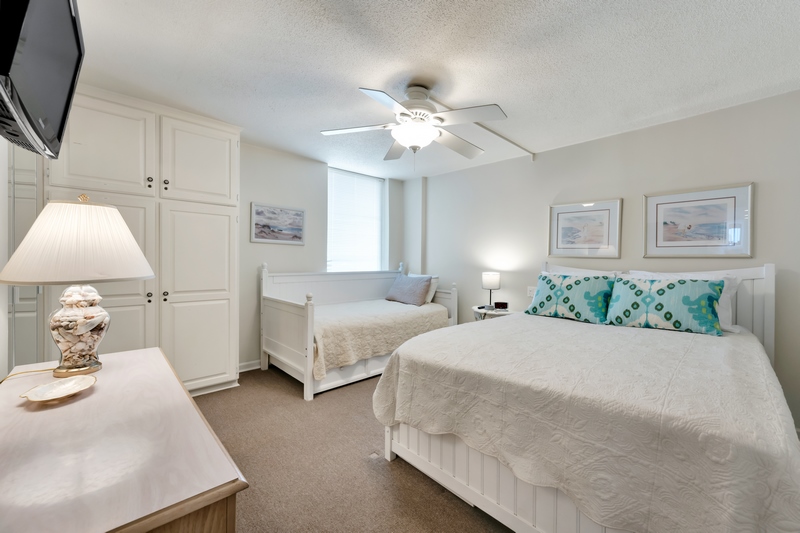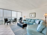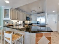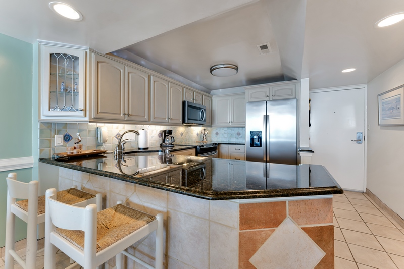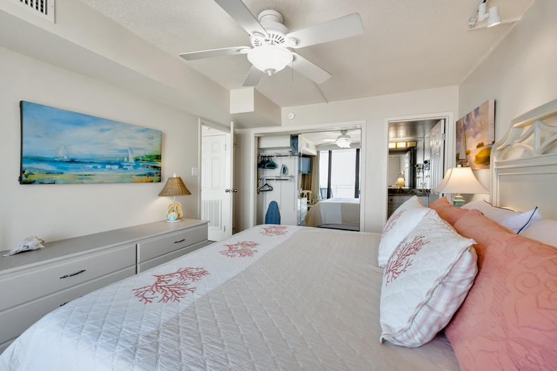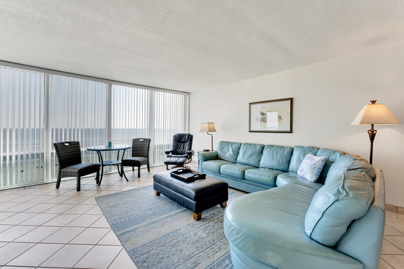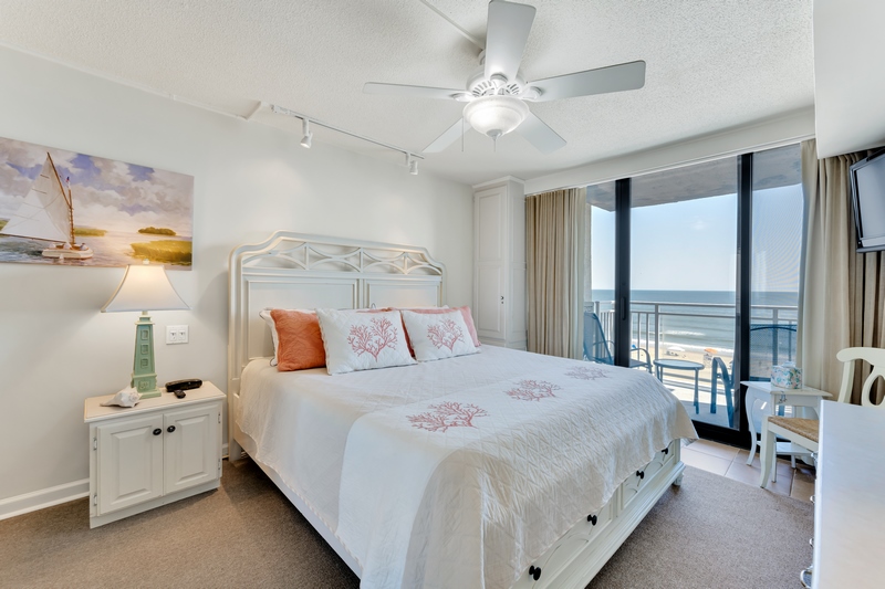 Enjoy your ocean front vacation in beautiful unit 502! The remodeled, modern open kitchen features granite countertops, custom lighting, stainless steel appliances and everything you need for preparing meals or enjoying takeout from the boardwalk. Sit at the kitchen bar or gather at the dining table. The large family room is a great place to enjoy the sunrise over the ocean through the expansive picture window or relax on the leather sofa and watch a movie on the big screen smart TV. The master bedroom also boasts ocean views with its own access to the attached balcony and a king size bed. The master bath has been beautifully remodeled in beach colors with custom tile and granite. The guest bedroom is equipped with a queen bed and a twin daybed. The hall bathroom, also recently renovated, has granite countertops and a bath/shower combination. You will find ceiling fans throughout, wifi, plenty closet space and a TV in each bedroom. It's just a few steps to the elevator and right to the beach!