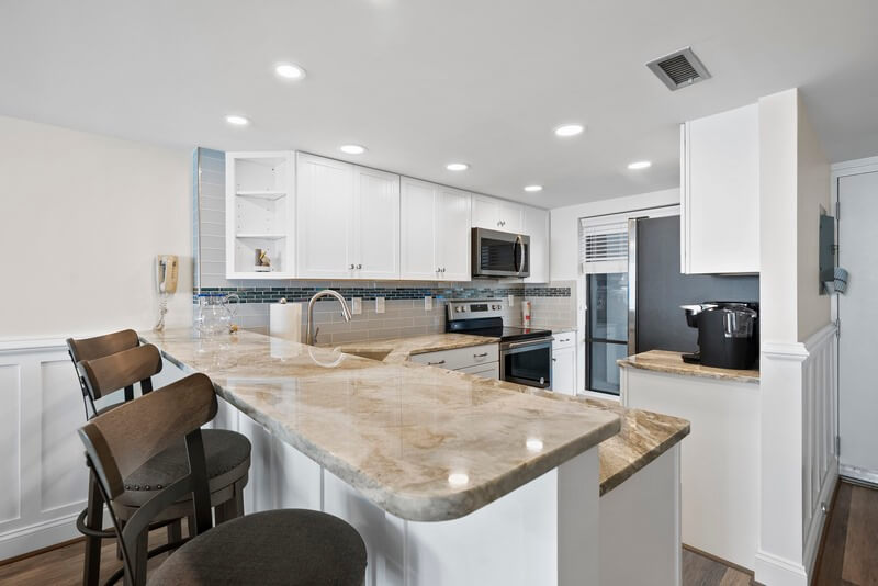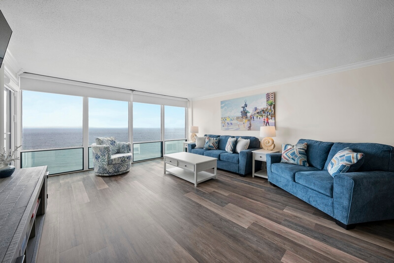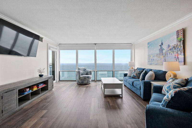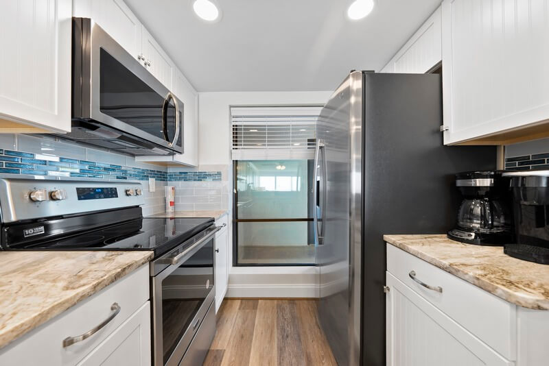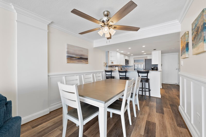 Escape to paradise with our stunning oceanfront 2-bedroom, 2-bathroom condo on the Boardwalk at 36th Street. Picture yourself waking up to the soothing sounds of waves crashing against the shore and the refreshing ocean breeze gently caressing your skin. This is more than just a vacation rental; it's your ticket to an unforgettable beach getaway! Recently renovated with an upgraded kitchen, fresh paint, new furniture, new décor, and the same amazing view and beach that has been building memories and enjoyed by families for decades. Our spacious condo boasts an ensuite primary bedroom with a king-size bed and walk-in shower, a second bedroom with 2 queen-size beds, plus a sofa bed in the living room ensuring a restful night's sleep for you and your guests. With a 65-inch smart TV in the living room, and large smart TVs in the primary and second bedrooms, you can unwind with your favorite shows or enjoy streaming a movie after a day of beachside adventures. Whip up delicious meals in the beautiful recently renovated full kitchen, equipped with all the essentials including new stainless steel appliances, refrigerator with ice maker, dishwasher, and microwave. There are plenty of cookware and kitchen gadgets including a Keurig and drip coffee maker, and lots of extra kitchen gadgets. Enjoy your culinary creations in the dining area or step out onto the balcony overlooking the boardwalk for an alfresco dining experience you won’t soon forget. Keep an eye out for playful dolphins dancing in the early surf while you enjoy a cup of coffee on the balcony, a favorite pastime for many of our guests!